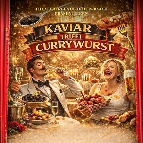 "Kaviar trifft Currywurst" – das neue Stück der Theaterfreunde Die Theaterabteilung der Sportfreunde Höfen-Baach beginnt den Vorverkauf für ihr neues Stück "Kaviar trifft Currywurst". Auf der Open Air Bühne des Höfen-Baacher Festgeländes am Vereinsheim in der Talstraße 20 in Winnenden-Höfen finden vier Aufführungen am 29. Mai, 30. Mai, 5. Juni und 6. Juni 2026 statt. VVK: 15,- Euro, Abendkasse: 18,- Euro. Keine Platzreservierung möglich. Einlass: 18:30 Uhr, Beginn: 20:00 Uhr. Ab dem 15. März 2026 startet der Vorverkauf bei AN.DY, Ringstr. 57 in Winnenden oder im Vereinsheim SF Höfen-Baach (donnerstags ab 19 Uhr) in der Talstraße 20, Winnenden-Höfen. Online-Bestellung unter www.theater-hoefen-baach.de oder bei www.eventim.de: Freitag, 29. Mai 2026 1. Theaterabend "Kaviar trifft Currywurst" Link zur Kartenbestellung 29.5.2026 Samstag, 30. Mai 2026 2. Theaterabend "Kaviar trifft Currywurst" Link zur Kartenbestellung 30.5.2026 Freitag, 5. Juni 2026 3. Theaterabend "Kaviar trifft Currywurst" Link zur Kartenbestellung 5.6.2026 Samstag, 6. Juni 2026 4. Theaterabend "Kaviar trifft Currywurst" Link zur Kartenbestellung 6.6.2026 Inhaltsangabe "Kaviar trifft Currywurst" Panik bei Erna Pfefferle... Sie führt eigentlich eine schäbige Eckkneipe, doch ihr reicher Cousin, der ihr Geld geliehen und überraschend seinen Besuch von den Bahamas angekündigt hat, ist überzeugt, sie betreibt ein Edel-Restaurant. Also wird aus Bierdeckel-Charme plötzlich „Haute Cuisine”, Stammgäste, sowie Ernas tollpatschiger Lebensgefährte müssen da natürlich mitziehen, auch wenn manch einer noch am Tresen hängenbleibt. Als dann noch eine Restauranttesterin vom Magazin „Der Feinschmecker“ einbestellt wird, ist das Chaosmahl serviert. Die Theaterfreunde Höfen-Baach freuen sich auf Ihren Besuch. | ||||